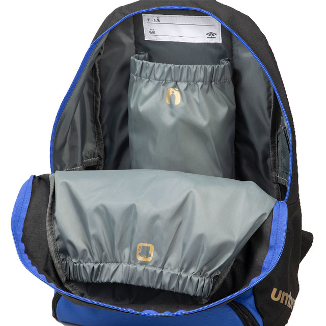 底部分にはシューズが収納可能で、本体横メッシュポケットにはシンガード、ボール用ネットも搭載しているので、外付けが可能。